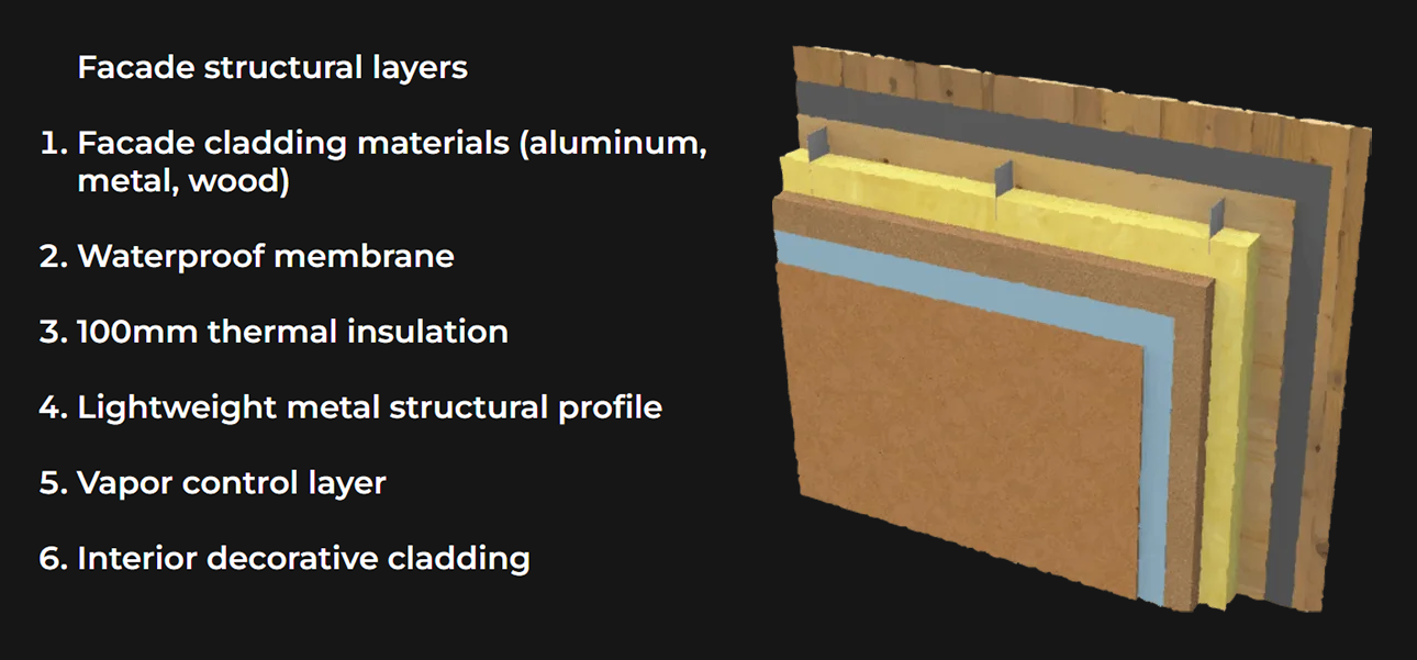 ZerroMax MOW houses on wheels are designed with a high level of energy efficiency, ensuring comfortable living throughout the year, even during the cold winter months. With a minimum insulation thickness of 160 mm, we achieve excellent thermal transmittance U- 0.243 W/(m²K), classifying the house on wheels as a low-energy building according to the European standard for residential energy efficiency.